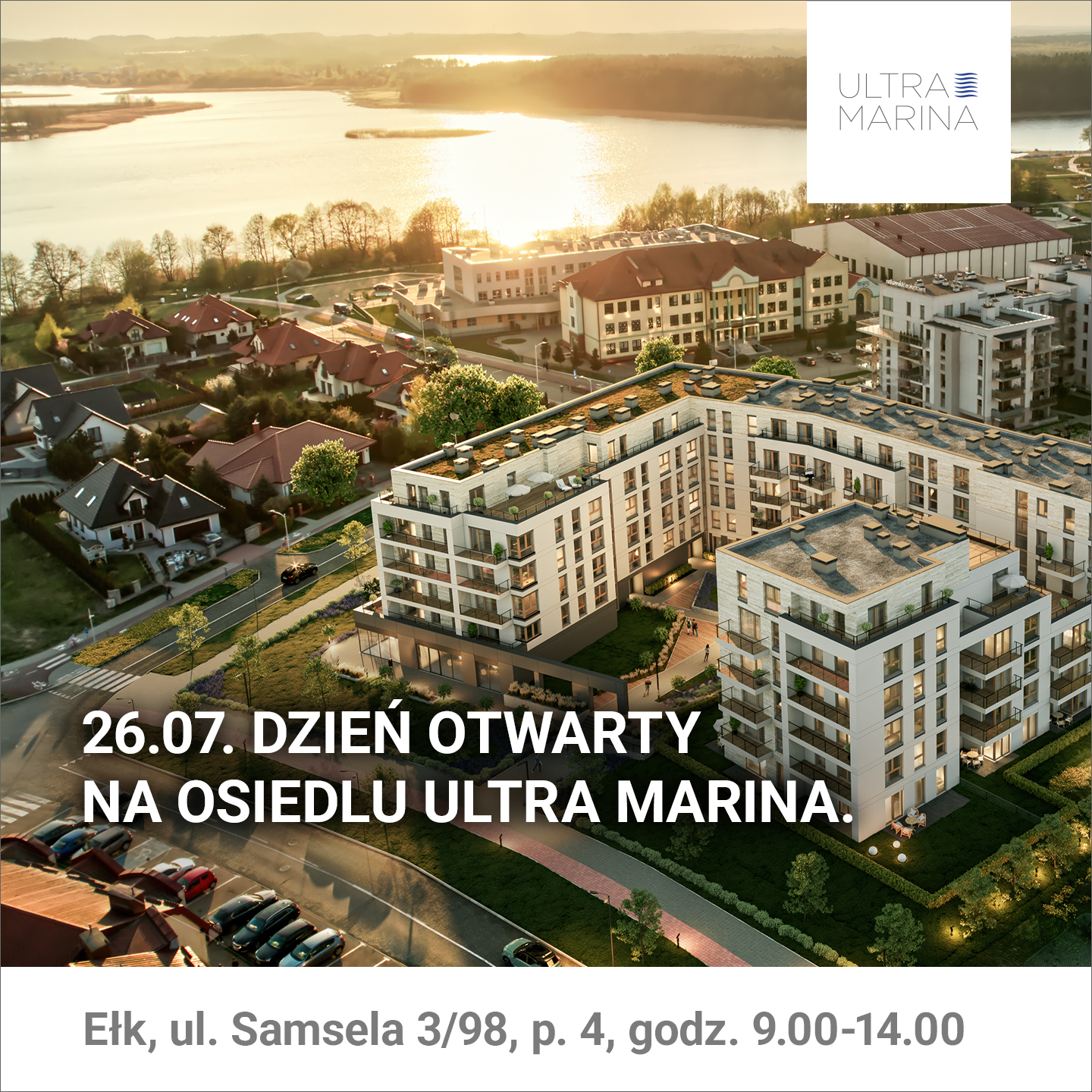Zapraszamy na Dzień Otwarty osiedla Ultra Marina w Ełku! Już w najbliższą sobotę, 26 lipca, w godzinach od 9:00 do 14:00, będziemy czekać na Ciebie w lokalu nr 98 (4 piętro), przy ul. Samsela 3 (etap I os. Ultra Marina) w Ełku. To świetna okazja, aby na własne oczy zobaczyć gotowe do odbioru mieszkania, bliżej poznać naszą ofertę oraz skorzystać z wyjątkowych rabatów przygotowanych wyłącznie dla Gości Dnia Otwartego.