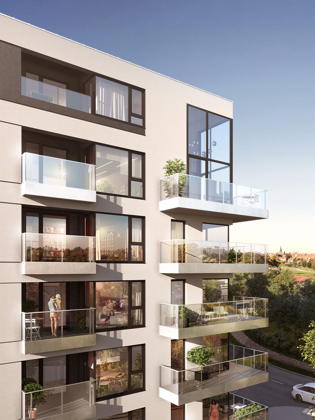 W ofercie znajduje się szeroki wybór metraży od 33,69 m² do 123,49 m². Prywatne, parterowe zielone tarasy w apartamentach od strony dziedzińca do około 106 m² lub przestronne balkony z nowoczesnymi panelami szklanymi – zapewnią dodatkową przestrzeń.