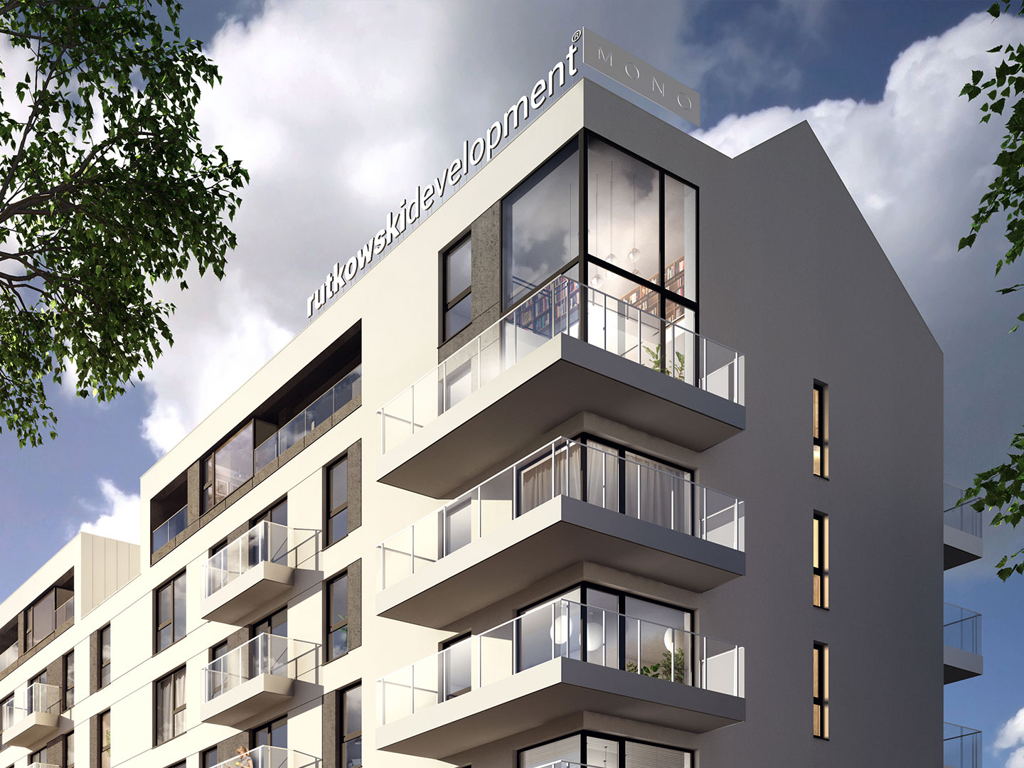 Inwestycję Mono tworzy 125 apartamentów wykonanych w standardzie premium plus oraz 3 lokale usługowe. W budynku znajduje się także hala garażowa, miejsca naziemne od strony dziedzińca i kameralny plac zabaw. Inwestycja jest przyjazna dla niepełnosprawnych.