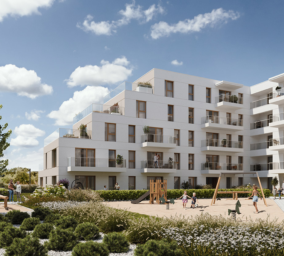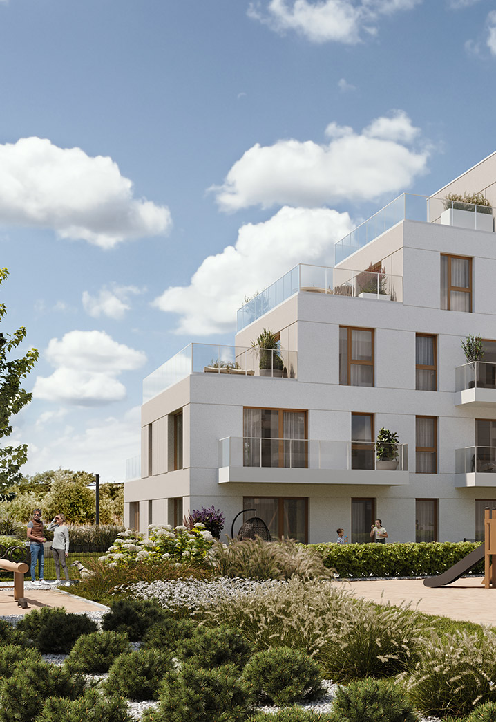 Jasna elewacja, panoramiczne przeszklenia i reprezentacyjny dziedziniec to wizytówka osiedla. W ofercie znajduje się szeroki wybór metraży od 28 m² do 81 m², stanowiąc doskonałą propozycję zarówno dla singli, jak i młodych par z dziećmi czy rodzin.