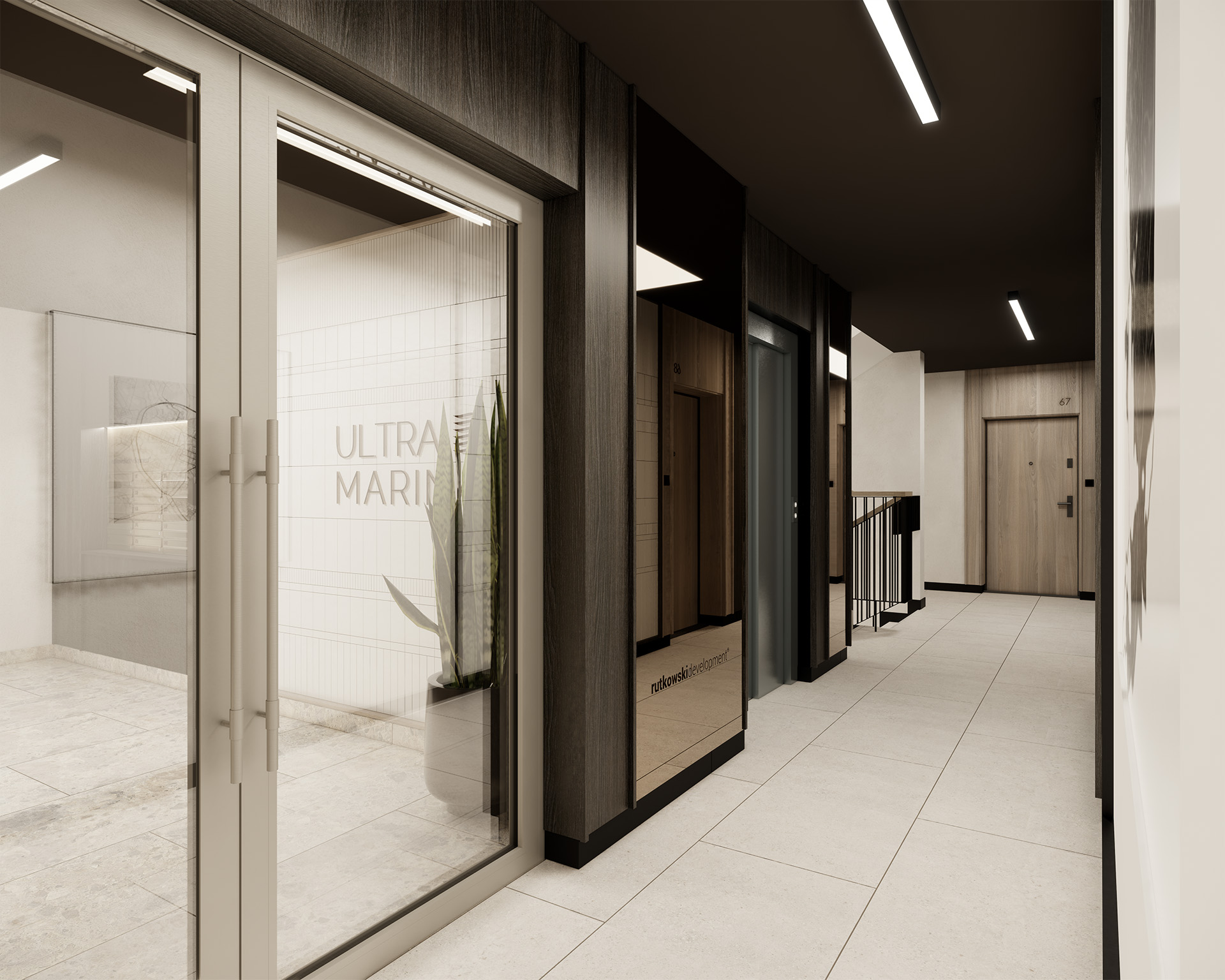 Poniżej prezentujemy części wspólne w inwestycji Ultra Marina, przy ul. Samsela w Ełku.
